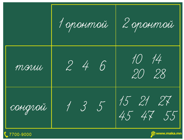 БУТАРХАЙ ТООНЫ ОРОН АНГИЙН САМБАР-МАРКЕР